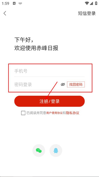 4、在密码登录界面,填写手机号和对应密码后,点击注册/登录,完成操作。
