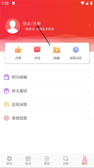2、在个人中心页面,点击登录/注册按钮,进入登录界面。