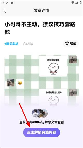 3、在文章详情页面,点击点击解锁完整内容按钮,会弹出会员开通页面。