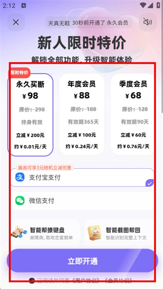 4、在会员页面,选择对应的会员套餐并完成支付,即可开通会员解锁文章完整内容。