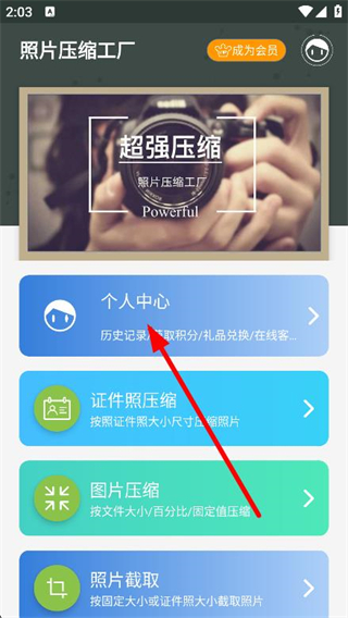 1、打开照片压缩工厂,点击下方的个人中心选项。