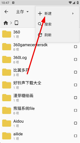 3、在弹出的菜单中,找到并点击上方的新建选项。