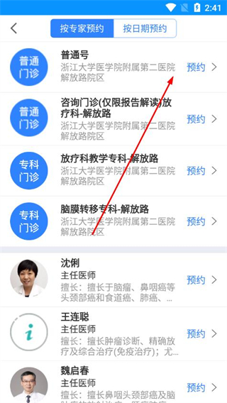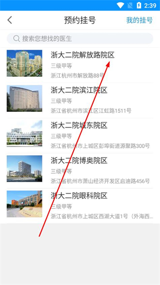 1、打开浙大二院APP,在首页点击预约挂号功能入口。