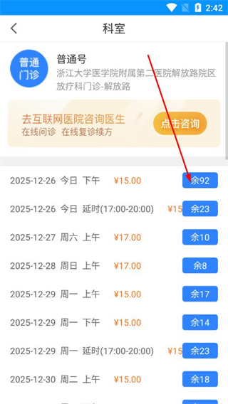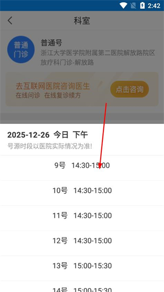 6、在号源时段选择页面,挑选具体的候诊时段。