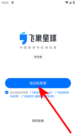1、在飞象星球登录选择页面,点击验证码登录,进入验证码登录页面。