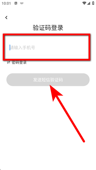 2、在验证码登录页面,输入手机号,点击发送短信验证码。