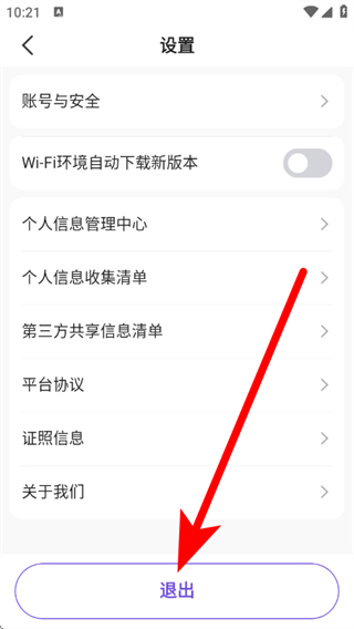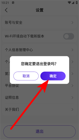 3、在设置页面,点击底部退出,跳出确认弹窗。