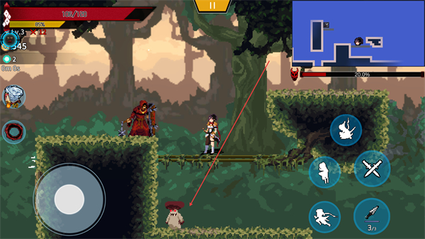 3、像素风硬核动作战斗,刀刀到肉的打击感搭配流畅的闪避、连击、奥义释放操作,女忍者的每一个招式都极具张力,不同武器与技能组合能打出截然不同的战斗流派。