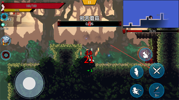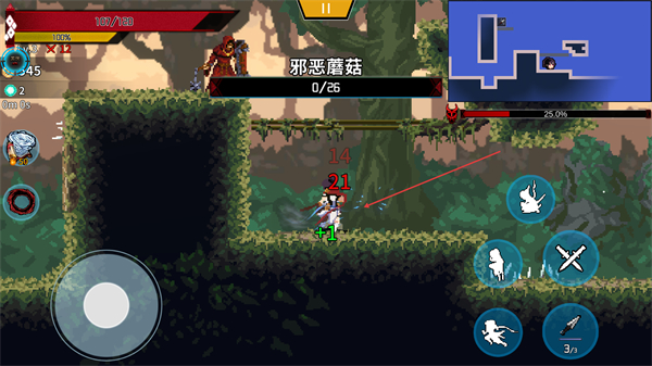 2、攻击邪恶蘑菇,积累击杀进度目标0/25,同时获取生命值回复。