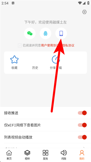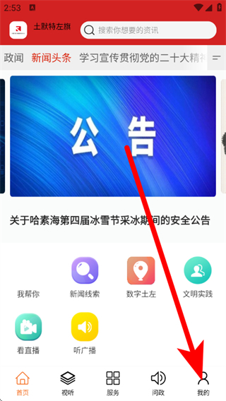 1、在融媒土左首页,点击底部我的,进入个人页面。