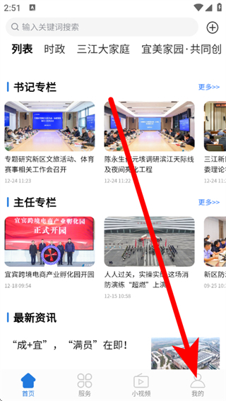 1、在宜宾三江新区,点击底部我的,进入登录页面。