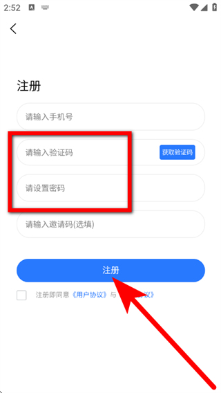 4、输入验证码,设置密码,勾选后,点击注册,完成账号注册。