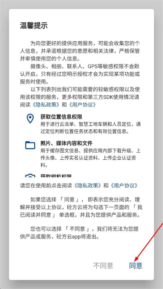 1、在温馨提示弹窗中,勾选对应权限选项后,点击同意按钮。
