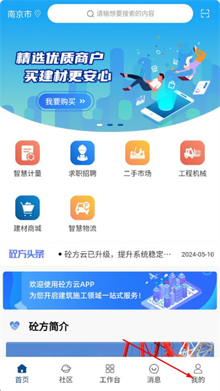 2、在砼方云首页,点击底部的我的选项,进入个人中心页面。