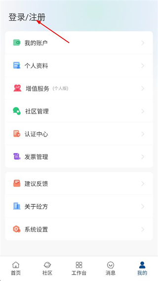3、在个人中心页面,点击登录/注册的选项,进入登录界面。