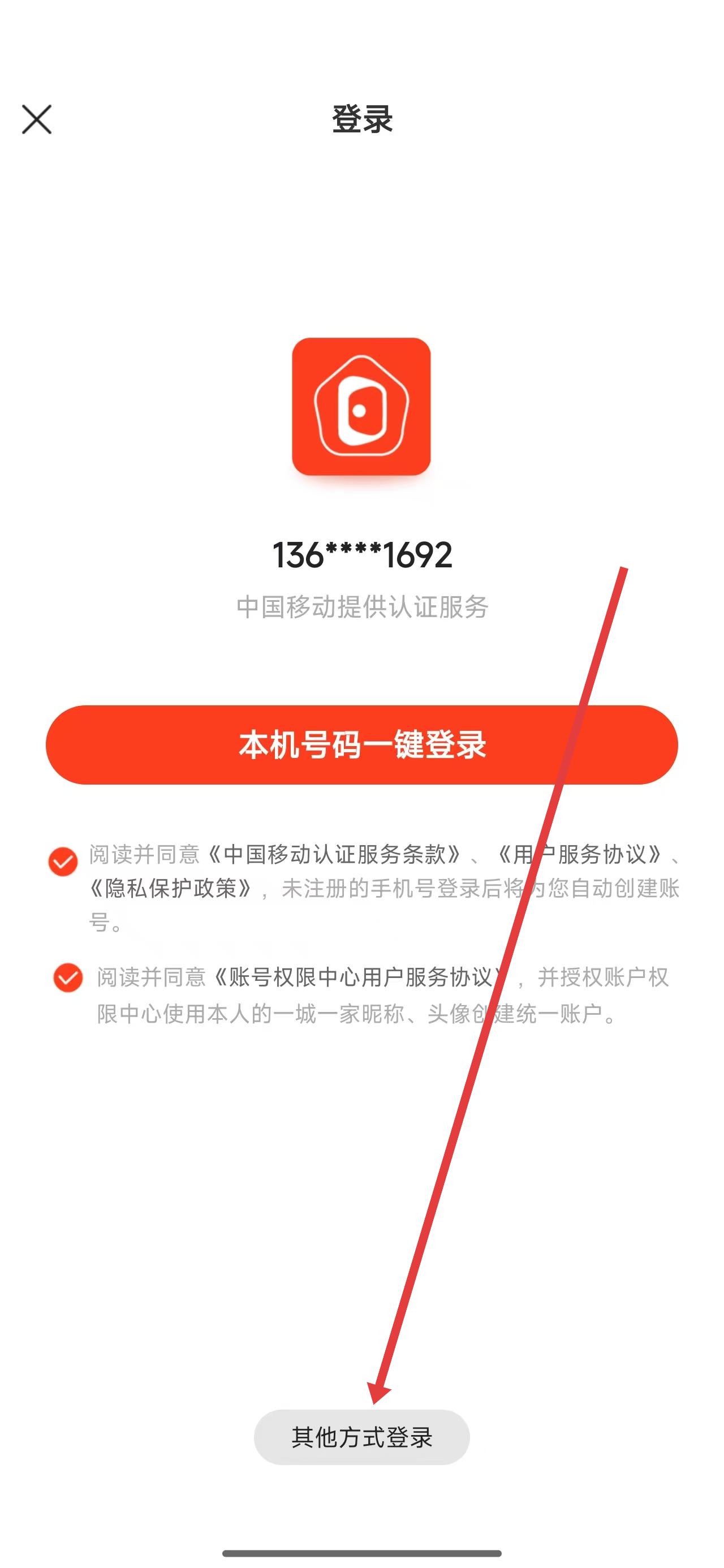 1、在进入到e城e家登录页面中,可以点击其他登录方式按钮,切换登录方式。