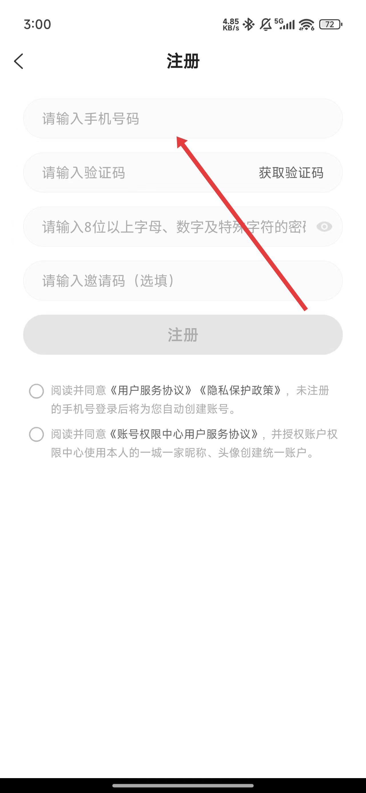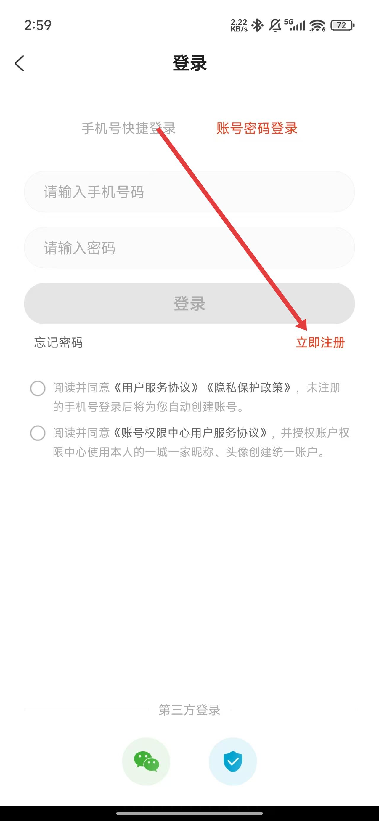 2、在切换完登录方式后若没有账号,可以点击注册按钮进行账号的注册操作。