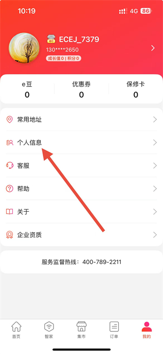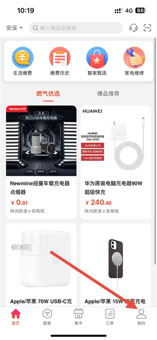 1、在e城e家app首页点击我的选项,进入个人页面。