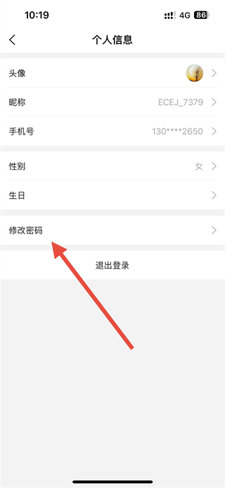 3、在个人信息页面点击修改密码选项,进入修改密码页面。
