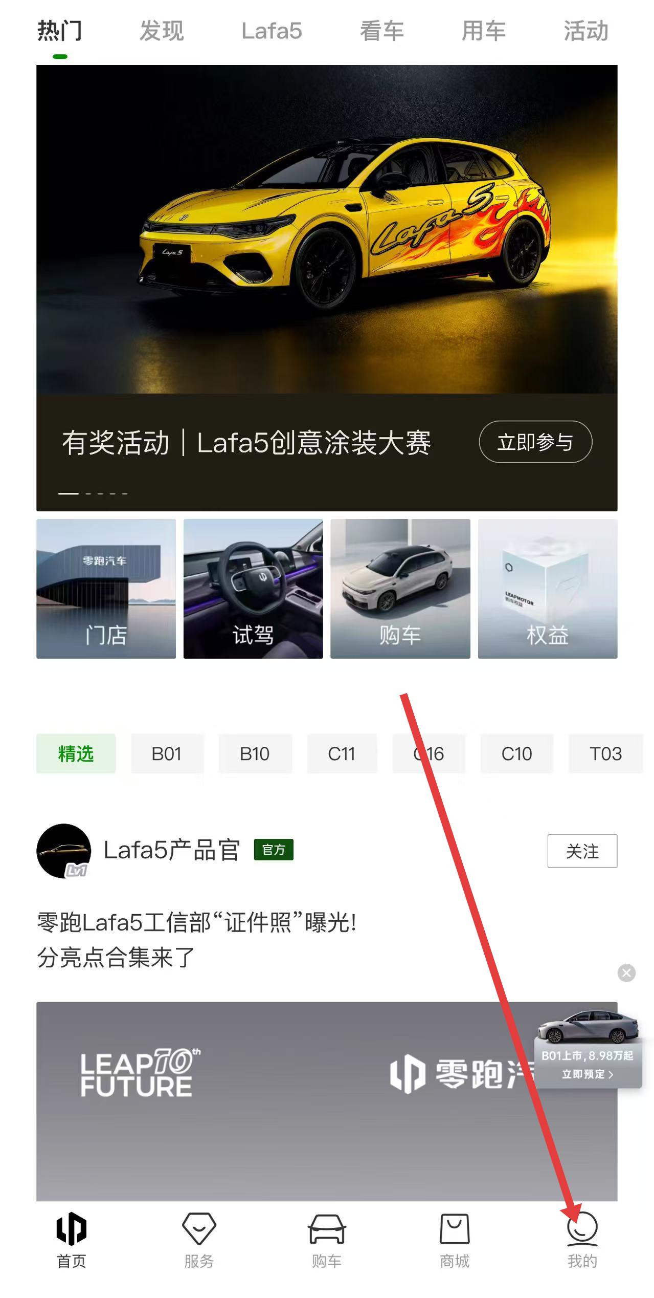 1、打开零跑app,在首页点击右下角我的选项,进入个人页面。