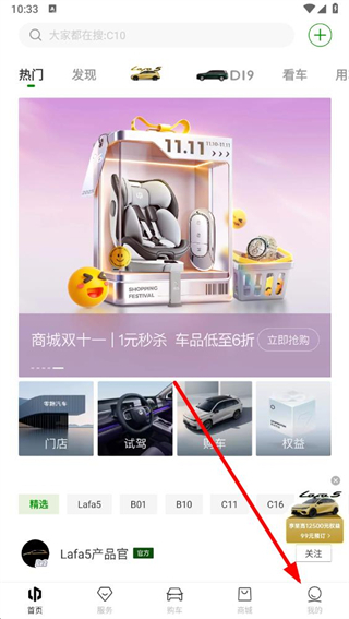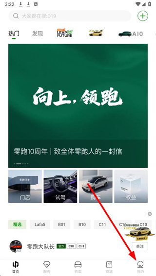 1、打开零跑APP,进入首页后,点击底部导航栏最右侧的我的选项。