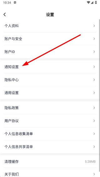3、在设置页面,点击通知设置选项,进入通知设置页面。