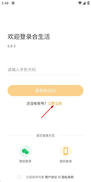 1、在登录页面点击立即注册选项,进入注册账号页面。