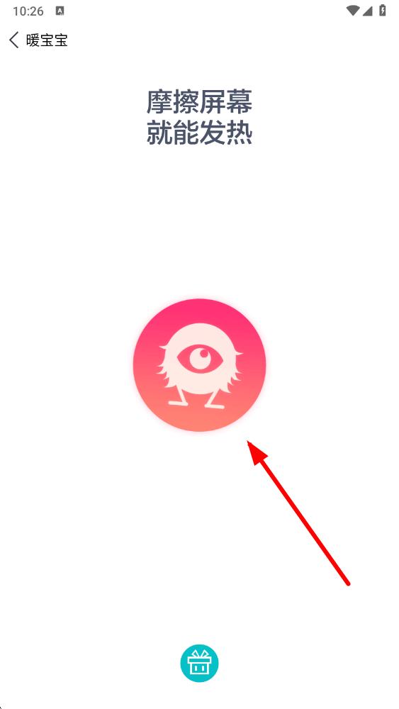 2、进入暖宝宝界面后,会看到摩擦屏幕就能发热的提示,在屏幕上进行摩擦操作,即可启动发热功能。
