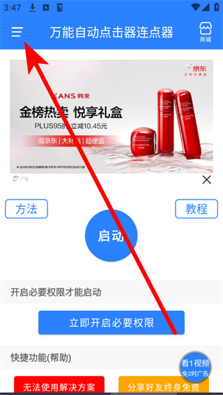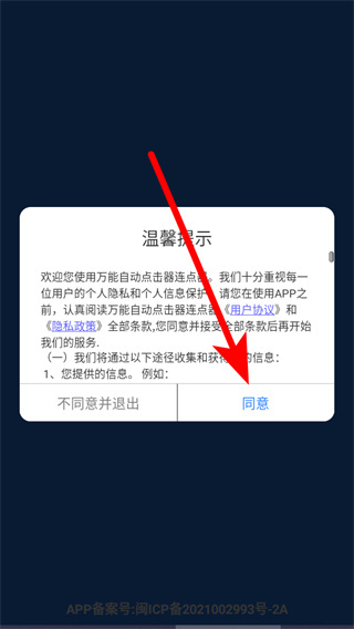 1、打开万能自动点击器连点器,在弹窗中点击同意,进入主界面。