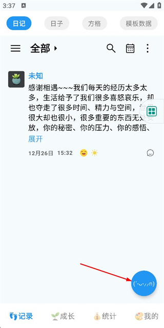1、在日记页面点击右下角的编辑按钮,进入日记编辑页面。
