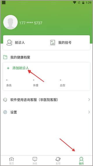 1、打开首都儿科研究所APP,点击底部导航栏的我的选项,进入个人页面后点击添加就诊人。