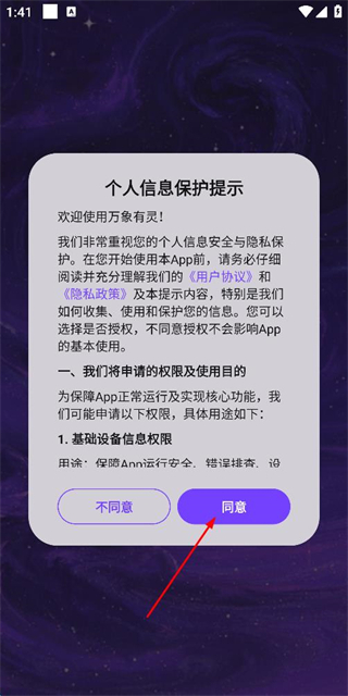1、在使用协议隐私政策弹窗中点击同意按钮,进入登录页面。