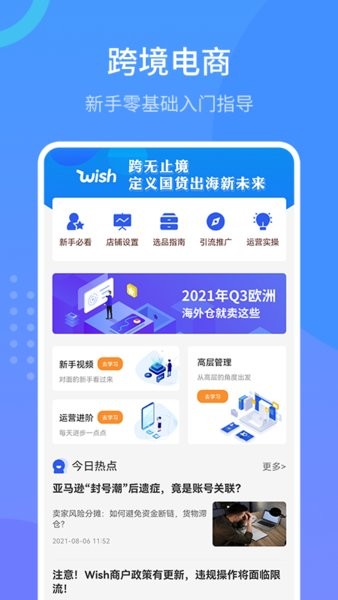 wish卖家手册手机版是专业的营销类型的电商手册app,不管是从零开始还是有一定基础的想要在wish上开店的小伙伴们,都需要来这里看一看,满满的干货等你来解锁,学到就是赚到,试试看你是否有这个实力吧!