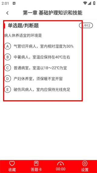 3、在章节题目页面,即可开始作答对应的单选题或判断题,进行答题练习。