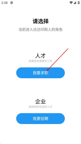 1、在角色选择页面,点击我要求职按钮,进入人才求职界面。