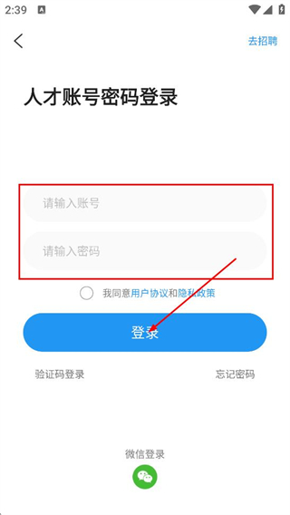 4、在账号密码登录页面,填写请输入账号和请输入密码后,并点击登录,完成登录。