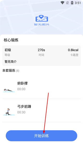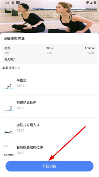 3、进入缓解腰部酸痛训练详情页,确认训练信息后,点击下方的开始训练按钮。