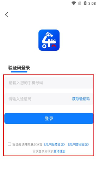 3、填写手机号码,点击获取验证码并输入,勾选协议后点击登录。