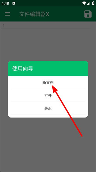 1、打开文件编辑器X,在弹出的使用向导中选择新文档。