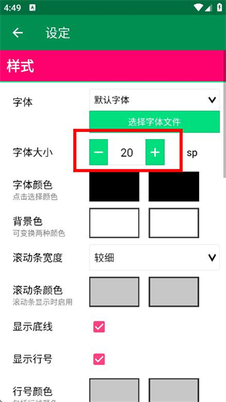 4、找到字体大小区域,通过按钮,即可调整字体大小。