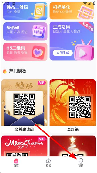1、打开二维码生成器App,点击页面底部的我的选项。
