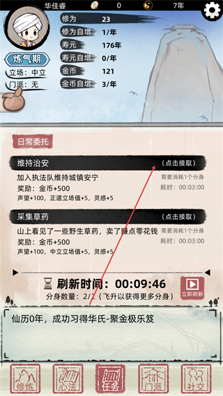 3、利用时间加速功能,快速推进时间,积累修为等资源。