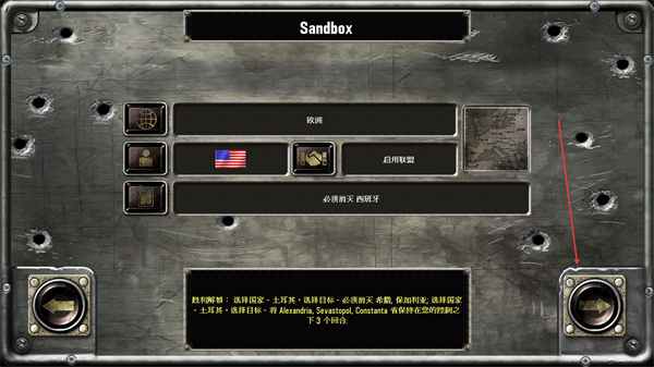 1、在Sandbox界面选择阵营如美国,确认战役目标后进入战场。