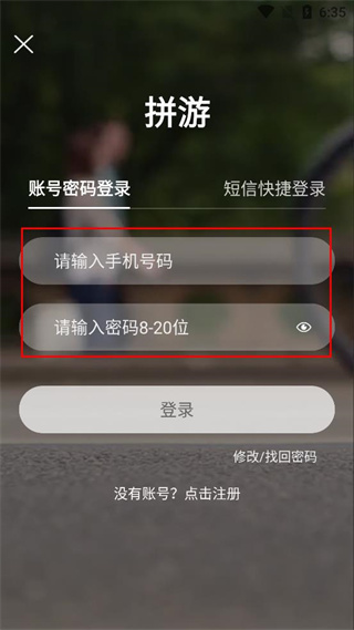 4、确认输入信息无误后,点击页面中的登录按钮,完成拼游APP的登录操作。