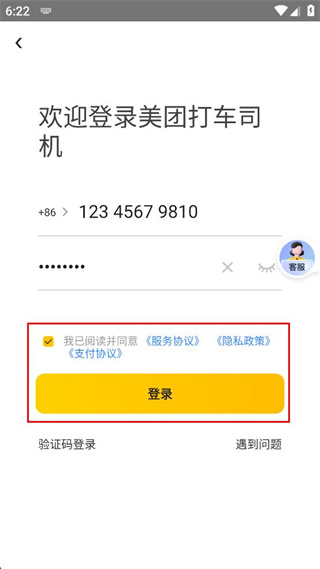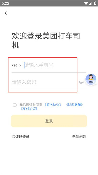 1、打开美团打车司机,阅读法律条款及隐私政策内容,点击页面中的同意按钮。