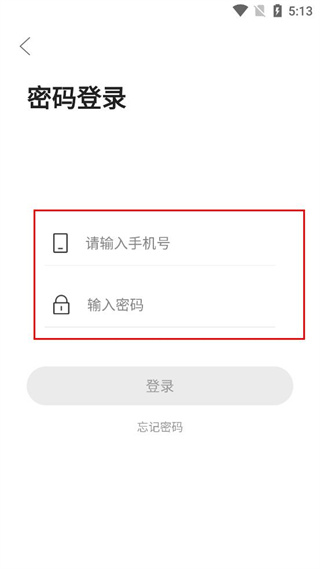 2、在密码登录界面,依次填写对应的手机号和登录密码信息。