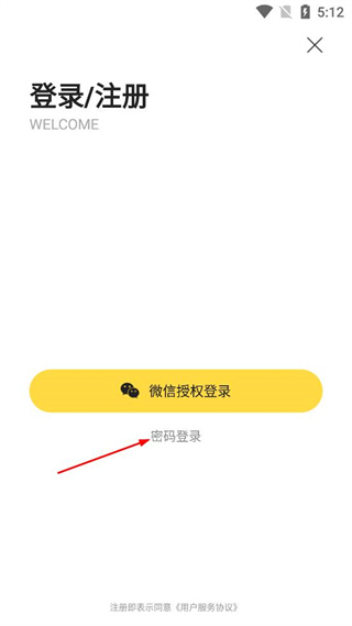 1、打开登录/注册界面,找到密码登录选项并点击进入对应页面。