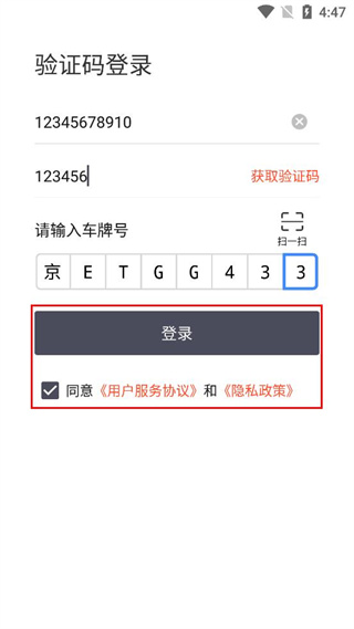 4、勾选同意相关协议的选项,确认信息无误后准备点击登录按钮完成操作。