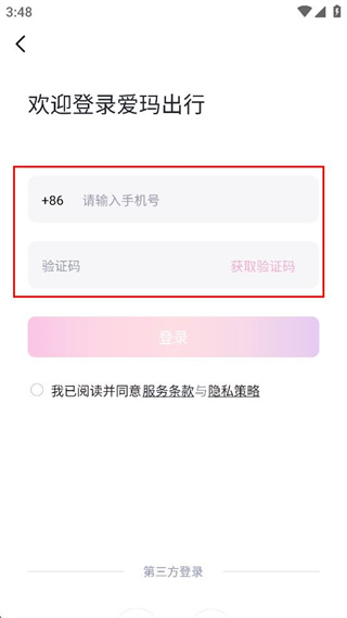 3、在登录界面填写手机号码,点击获取验证码按钮获取对应的验证信息。