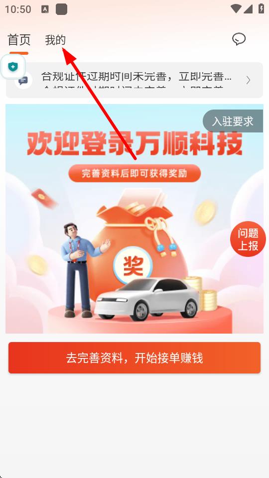 1、打开万顺车主APP,点击底部导航栏中的我的选项,进入个人页面。